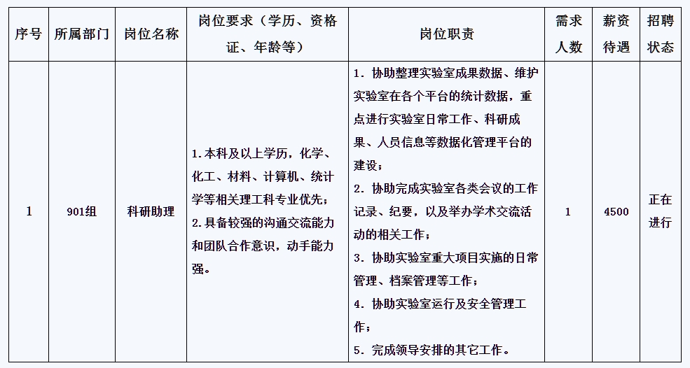 中国科学院山西煤炭化学研究所2025年度编制外人员招聘启事(901组)
